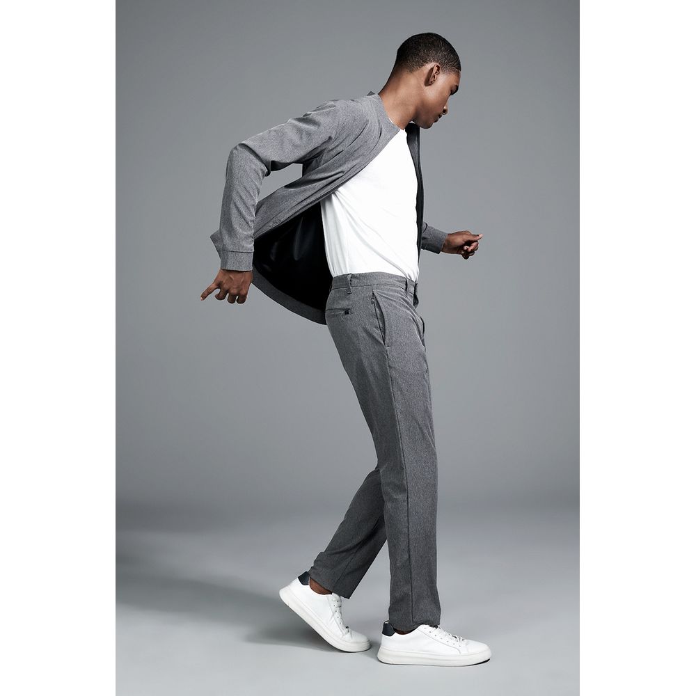Produzida em nylon cinza mescla, ela possui acabamento clean e corte de alfaiataria. O tecido entrega conforto e liberdade, pois possui dupla elasticidade (estica tanto na vertical quanto na horizontal) e muita praticidade ao dispensar passadoria e possuir secagem rápida. Essa peça conta com um bolso extra lateral, com zíper invisível, com funcionalidade anti-furto. Pode fazer conjunto com a Jaqueta Harbor ref.: 7030GCD00002