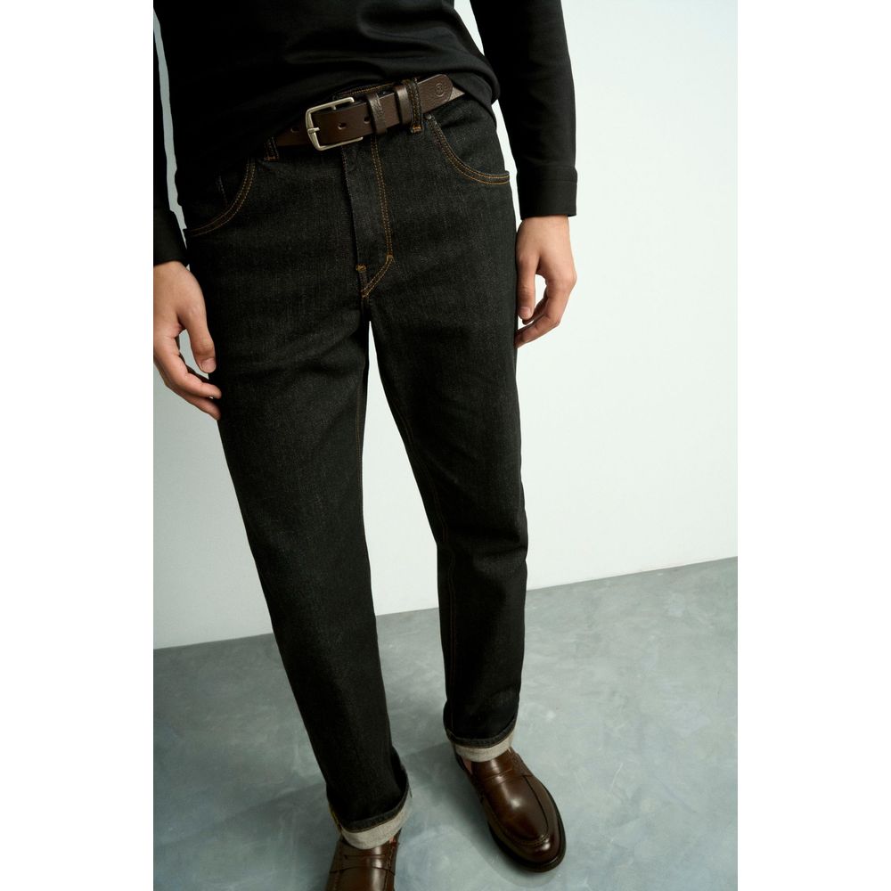 Este jeans preto da linha Vintage Denim traduz a estética do raw denim em uma versão profunda e contemporânea. Confeccionado em 98% algodão e 2% de elastano com peso aproximado de 12 oz, mantém a rigidez e estrutura originais do denim tradicional, criando dobras, marcas e nuances conforme o uso. A modelagem reta relaxed garante um caimento moderno sem perder a identidade clássica da Vila Romana.