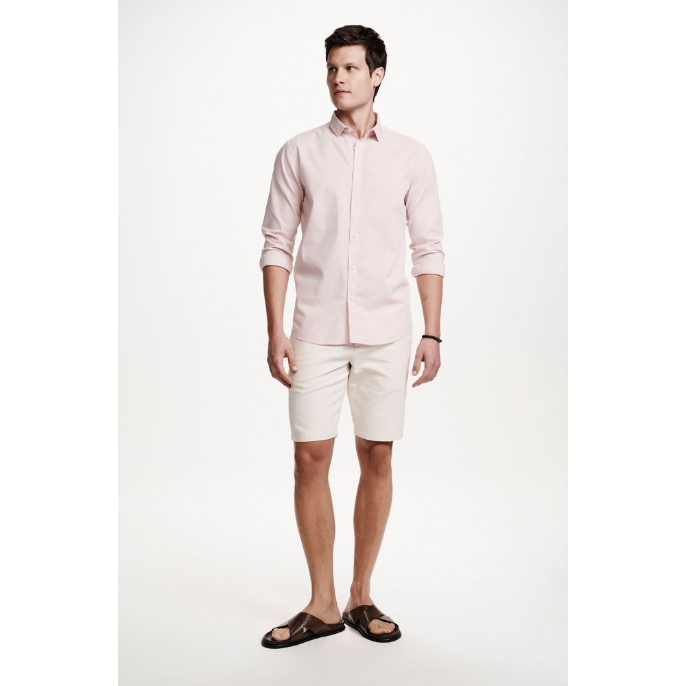 Camisa Casual Em Linho Rosa