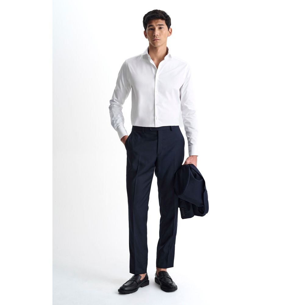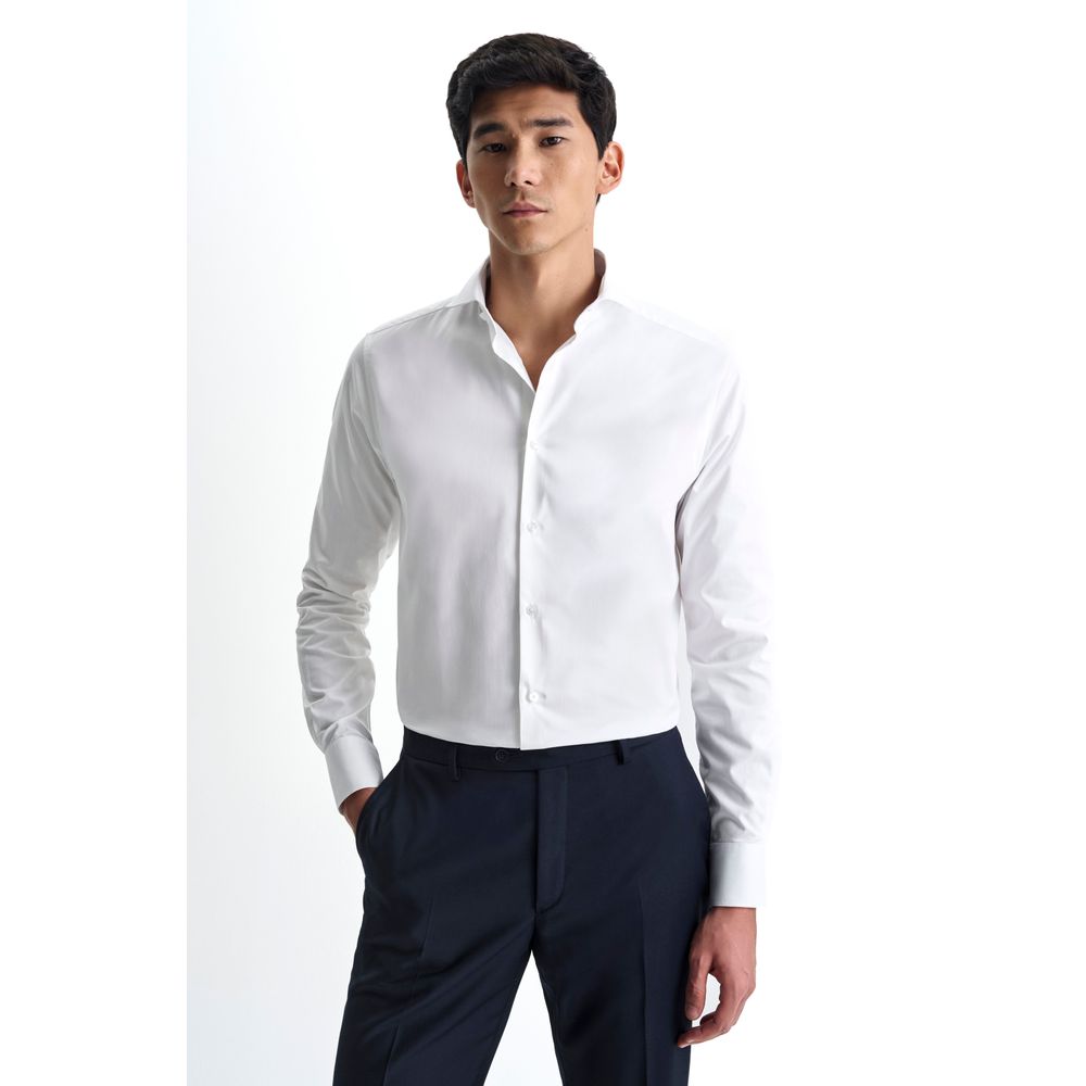 Essa camisa social manga longa é produzida em tecido tricoline 100% algodão com fio 50, que caracteriza uma construção mais nobre e aumenta a qualidade do toque. A modelagem é básica e possui o colarinho semi italiano com barbatanas internas removíveis. É uma camisa leve e com o conforto térmico do algodão. Composição textil: 100% algodão