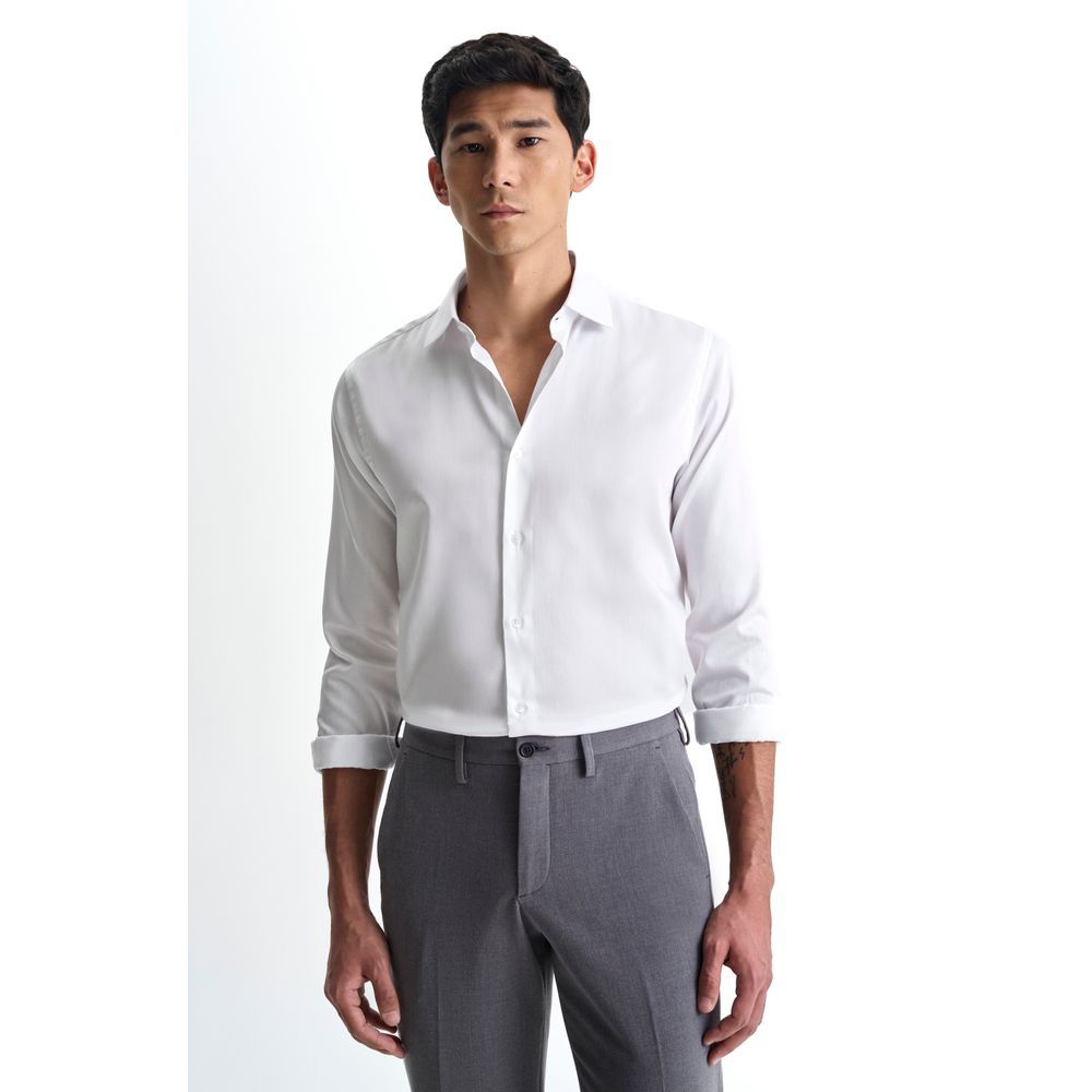 Essa camisa social manga longa é produzida em tecido 100% algodão com fio 60, que caracteriza uma construção mais nobre e aumenta a qualidade do toque. A modelagem é básica e possui o colarinho semi italiano com barbatanas internas removíveis. É uma camisa leve e com o conforto térmico do algodão. Composição textil: 100% algodão
