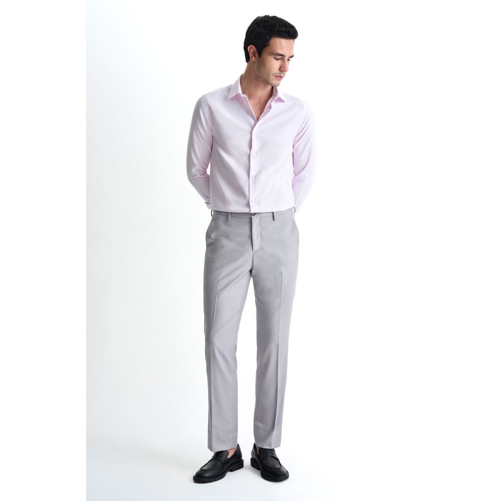 Essa camisa social manga longa é confeccionada com tecido misto de poliester com algodão. Ela tem colarinho semi italiano e barbatanas internas removíveis. A modelagem é básica e com excelente caimento. Composição textil: 55% Poliester, 45% Algodão