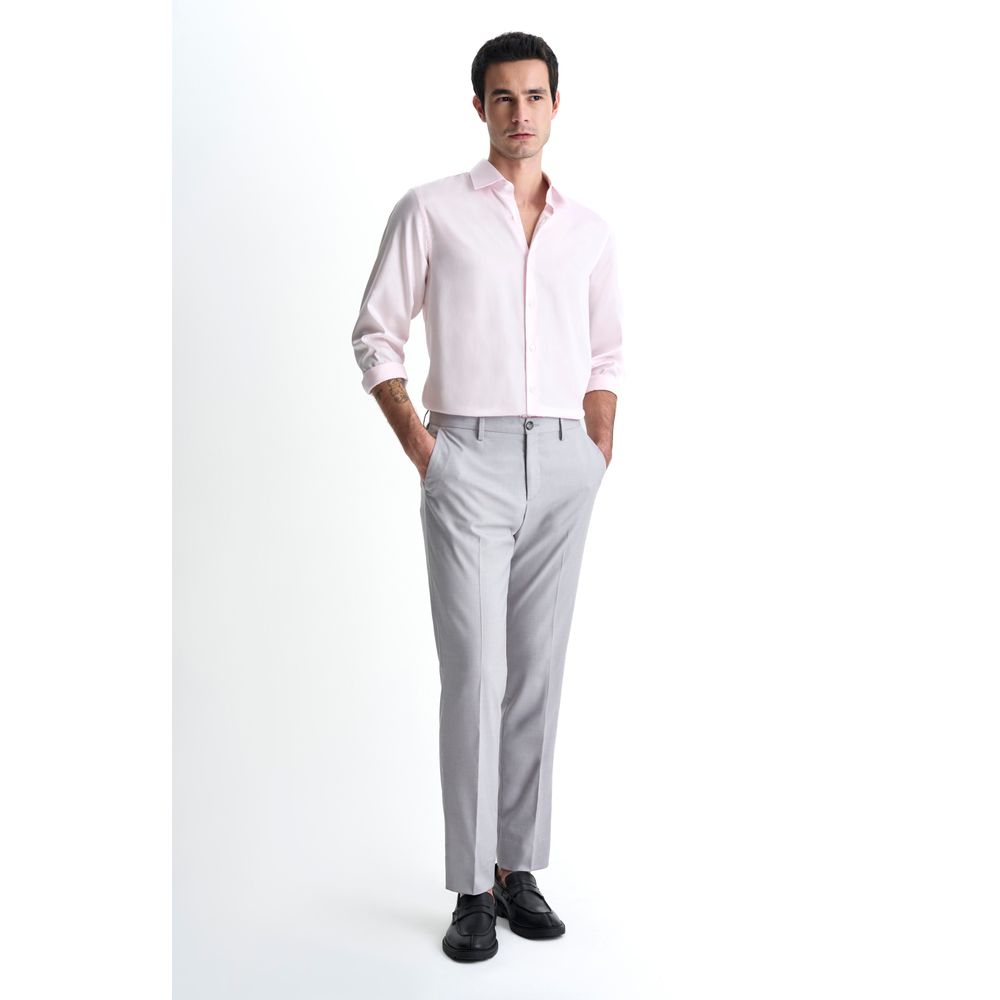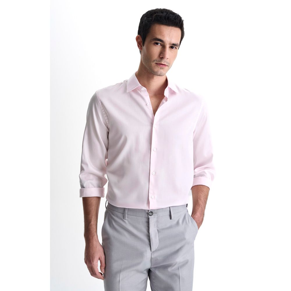 Essa camisa social manga longa é produzida em tecido 100% algodão com fio 60, que caracteriza uma construção mais nobre e aumenta a qualidade do toque. A modelagem é básica e possui o colarinho semi italiano com barbatanas internas removíveis. É uma camisa leve e com o conforto térmico do algodão. Composição textil: 100% algodão