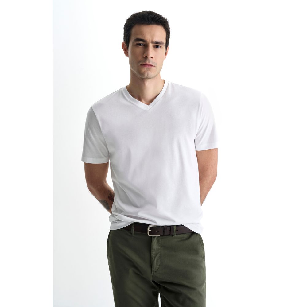Camiseta Manga Curta Lisa Gola v Silk High Density Branca
