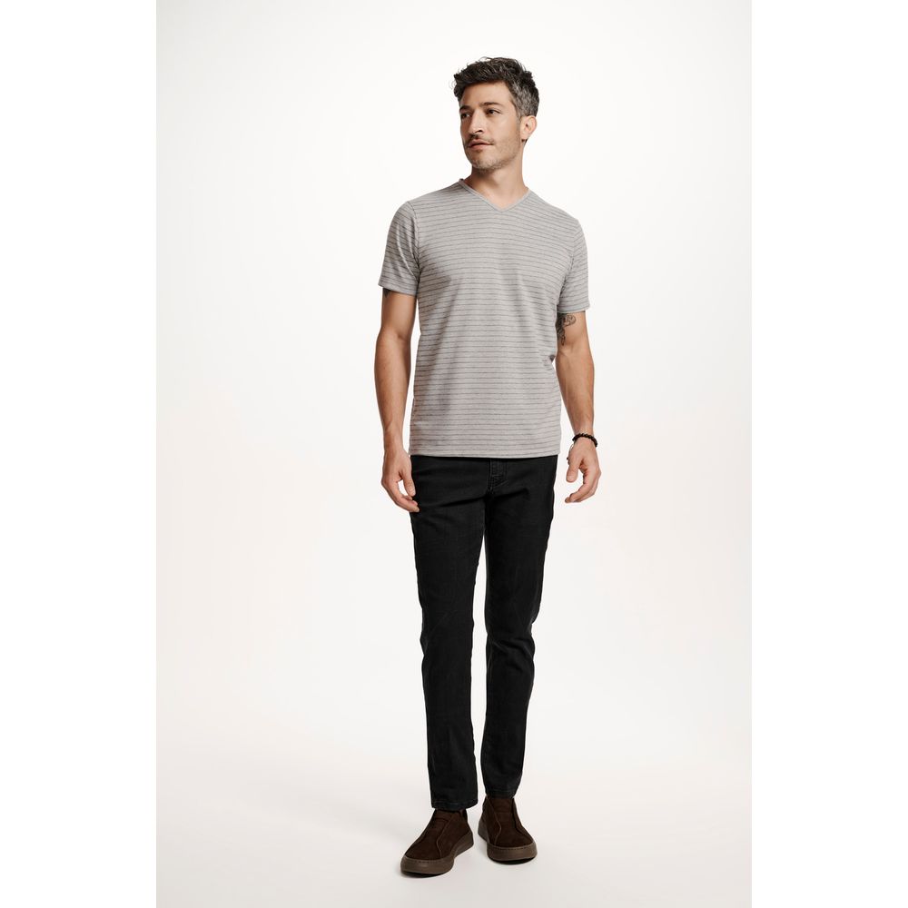 Essa camiseta Vila Romana é confeccionada em malha listrada de composição 57% poliéster 39% algodão 7% viscose. A peça tem modelagem regular, com caimento reto, gola V pespontada e etiqueta com o logo da marca aplicado na barra da manga. Ideal para ser usado com calça jeans Vila Romana.