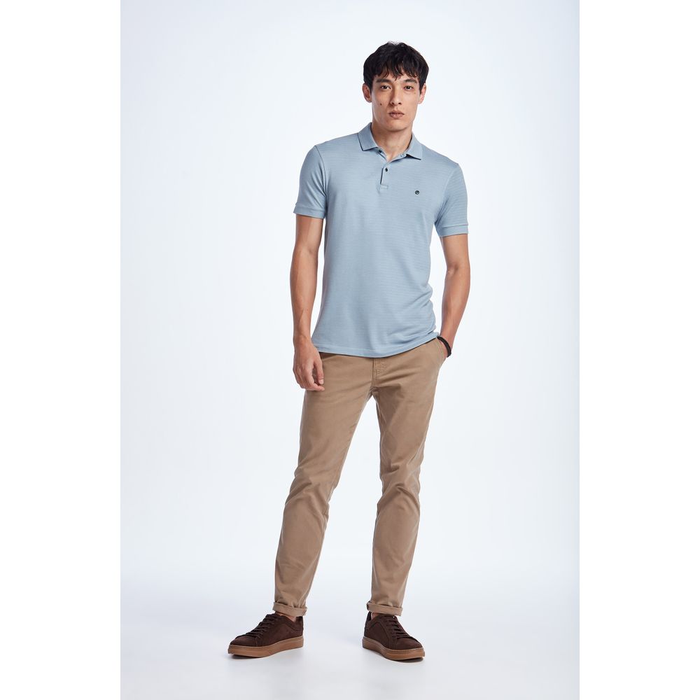 O modelo conta com gola tradicional, dois botões frontais e acabamento canelado nas mangas. O discreto logo aplicado no peito adiciona identidade à peça com sobriedade e bom gosto.