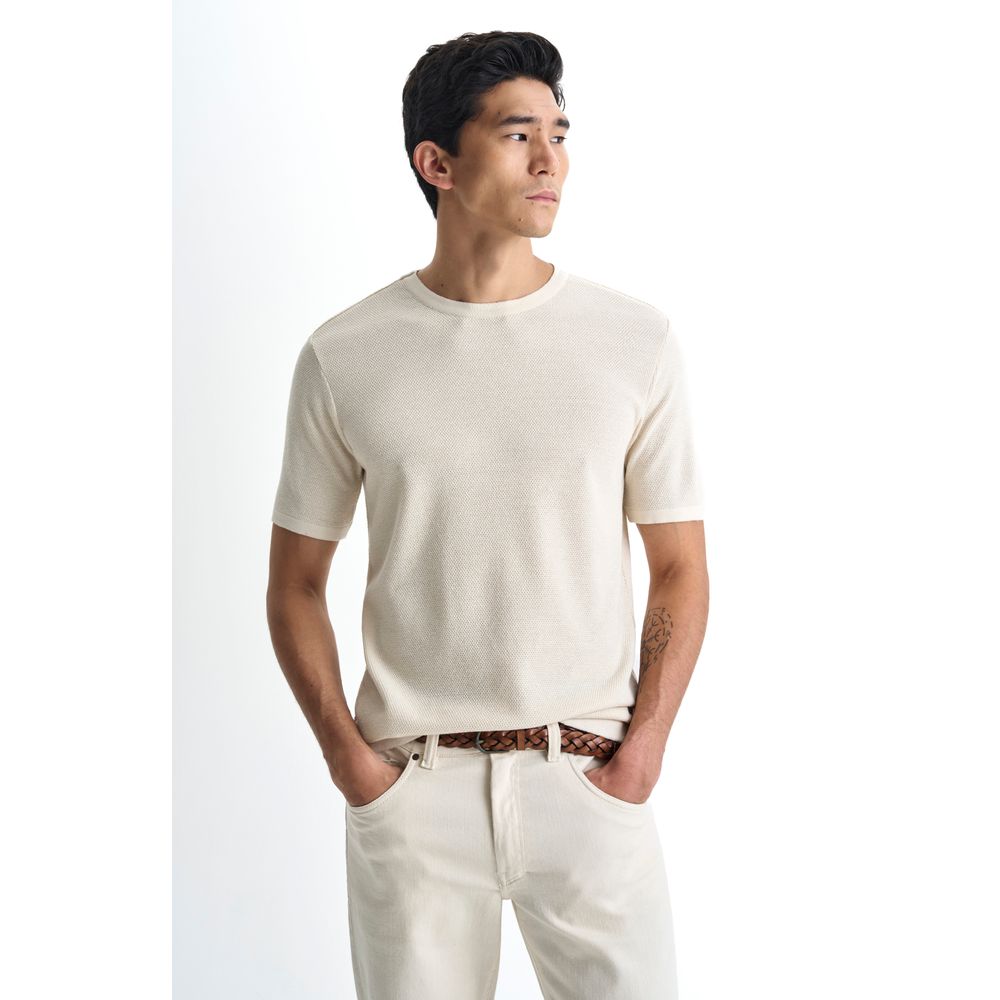 T-Shirt Manga Curta De Tricot Texturizado Bege